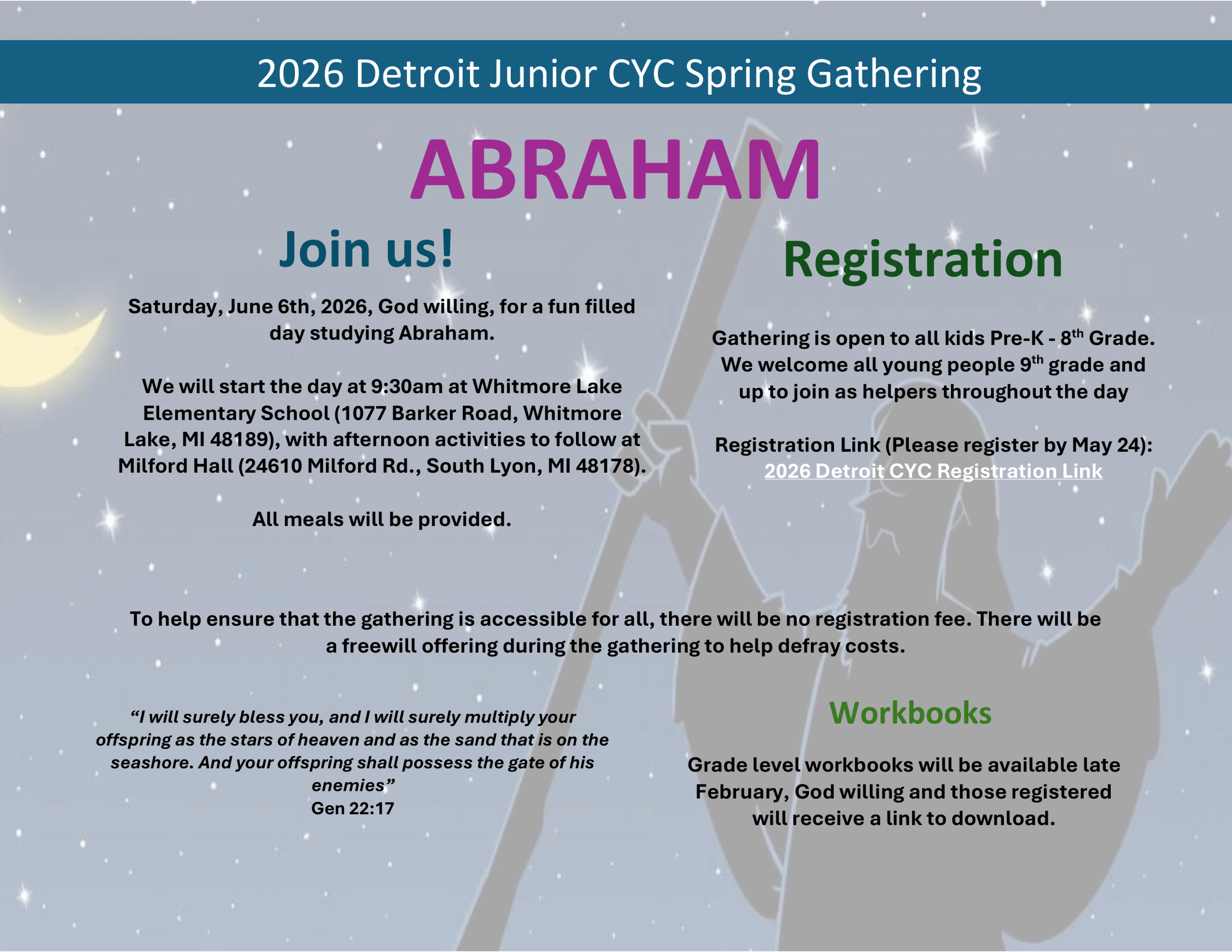 Announcing Detroit’s Junior CYC gathering on June 6, 2026, God willing.
