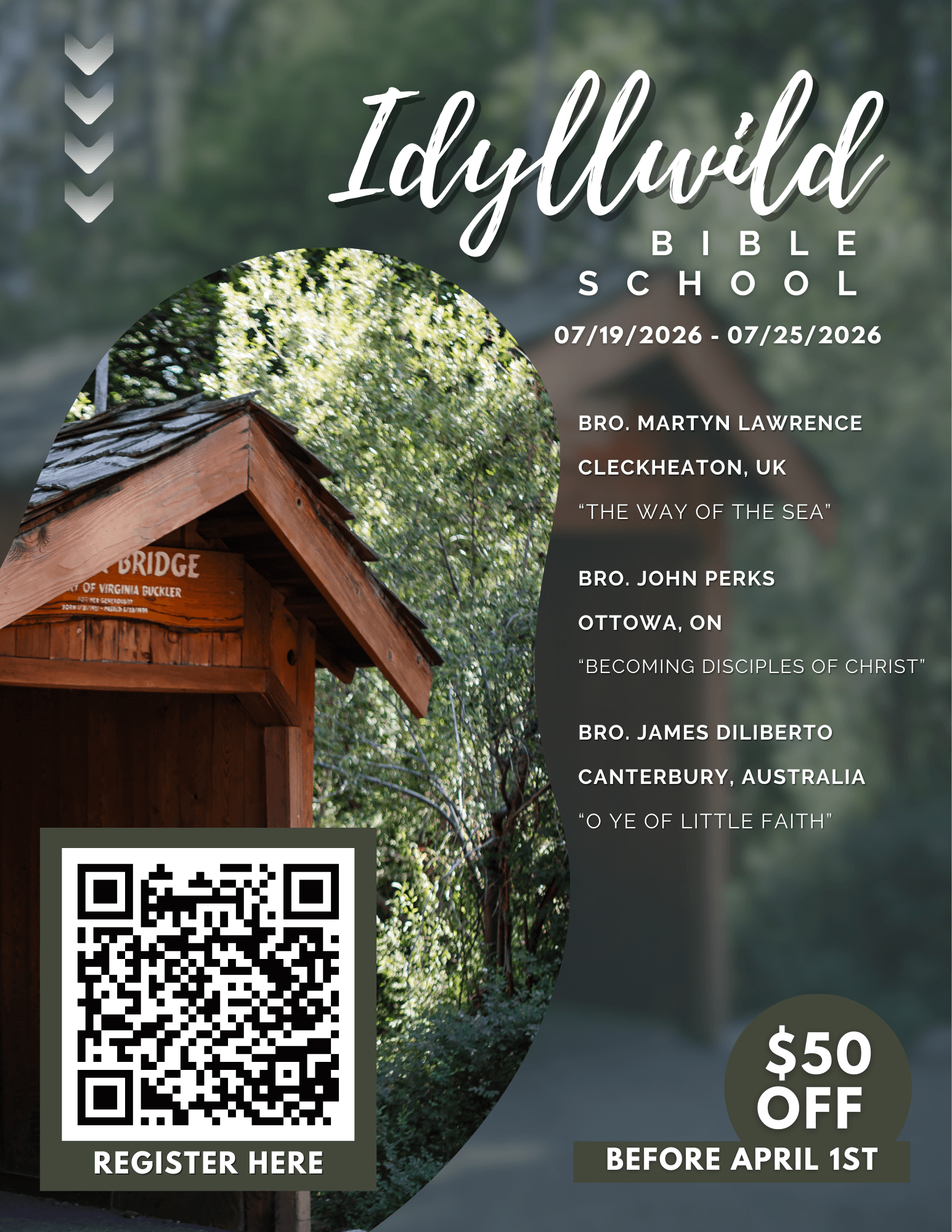 Registration is open!! Idyllwild Bible School will take place July 19–25, 2026 and we welcome all to attend!